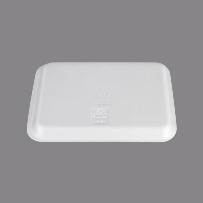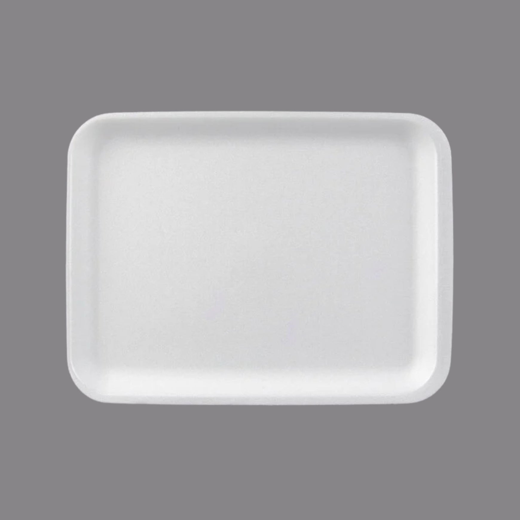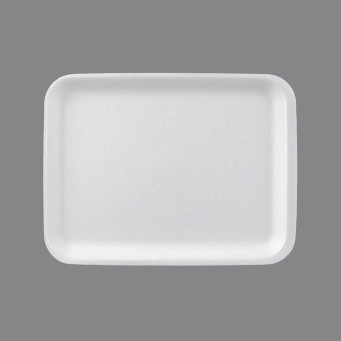 Ensure a fresh and professional presentation for meats, fruits, and vegetables with the CKF 88120 #20S White Foam Tray. Designed with high-quality, durable foam, this tray is perfect for neatly arranging and displaying poultry, produce, and other fresh items in refrigerated merchandisers. Its 8 3/4" x 6 1/2" x 3/4" size provides ample space while maintaining a compact and functional design. The clean white color enhances product visibility, making identification easy while creating an attractive display.