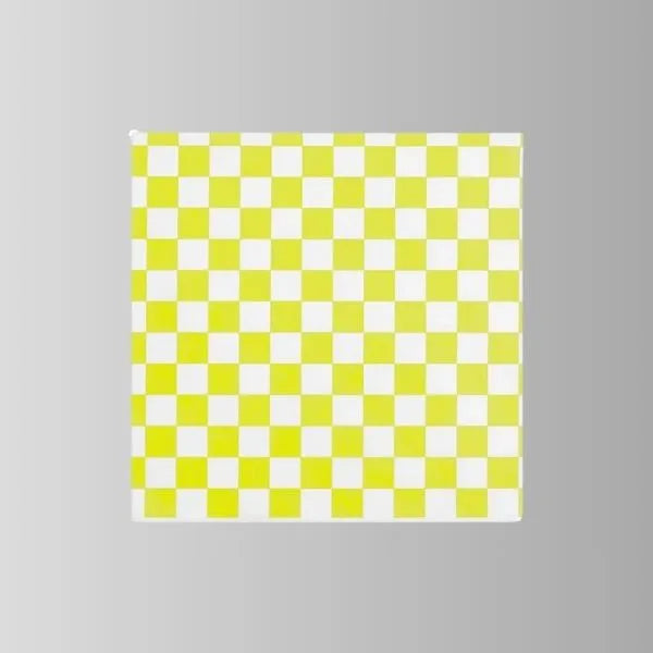 Brighten up your food presentation with these classic yellow and white checkered sandwiches wrap sheets. This paper isn't just functional; it's a statement piece that evokes the fun, nostalgic feel of a classic diner or picnic. The versatile 12" x 12" size is perfect for wrapping sandwiches and burgers, lining serving baskets, or even as a disposable placemat, adding a pop of color and personality to every order.