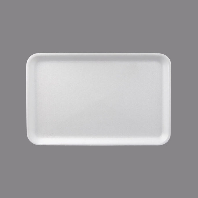 Ensure a fresh and professional presentation for meats, fruits, and vegetables with the CKF 88116 #16S White Foam Tray. Made from high-quality, durable foam, this tray is designed to neatly arrange and display poultry, produce, and other fresh food items in refrigerated merchandisers. The 11 3/4" x 7 1/2" x 5/8" size provides a practical solution for packaging while maintaining a sleek and functional design. The crisp white color enhances visibility, making product identification simple and appealing.