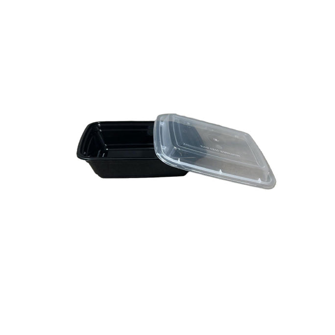Recipiente rectangular resistente para microondas, de 12 oz, de color negro, de 6" x 4 3/4" x 1 3/4" con tapa, 150 por caja