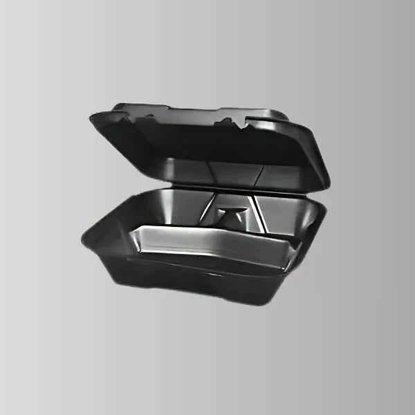 Genpak SN243-3L Black Foam Hinged Lid Container 8" x 8" - 3 Compartment – 200/Case