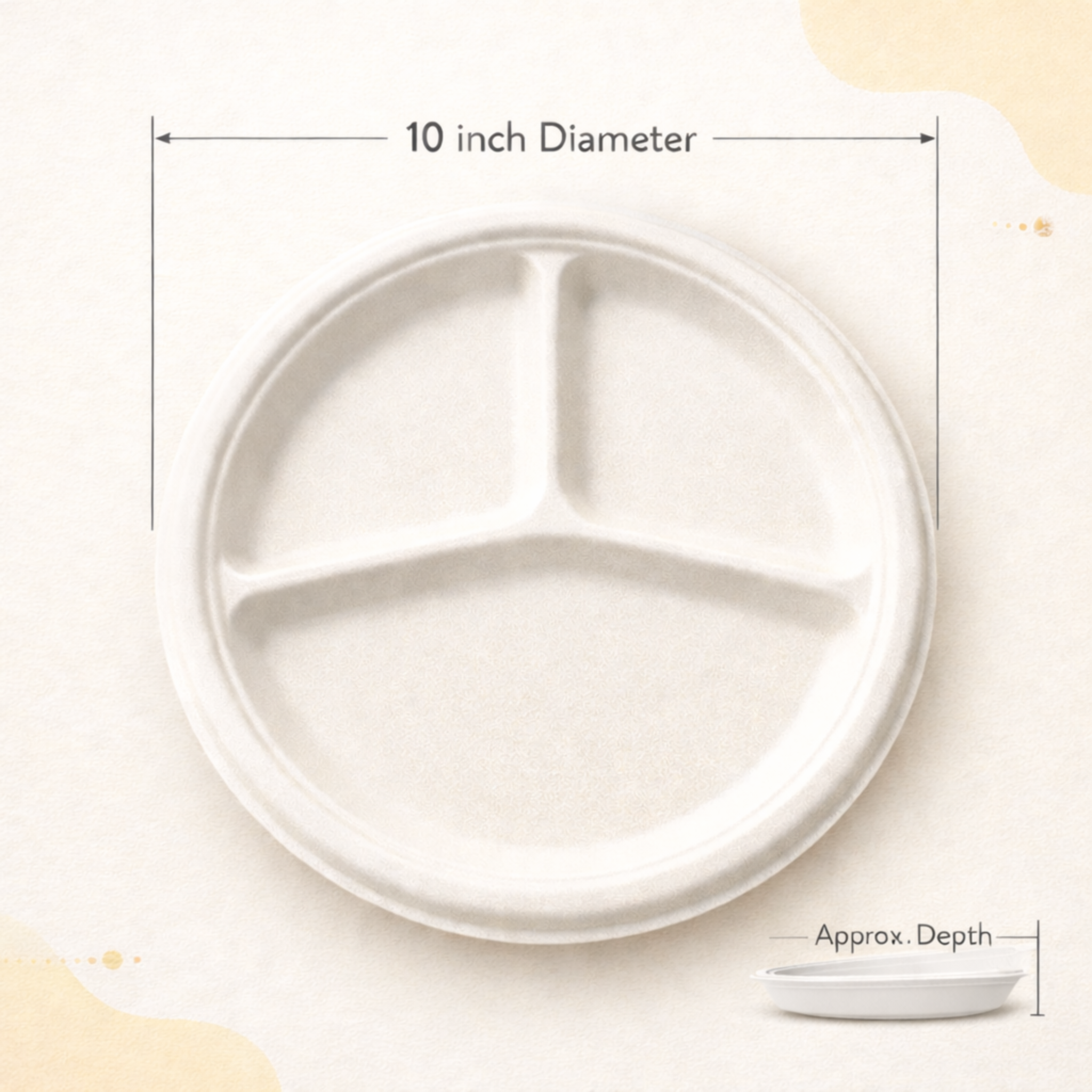 Serve your meals sustainably with the Compostable Bagasse Plate 10". Made from eco-friendly bagasse, a byproduct of sugarcane, this compostable plate is the perfect alternative to plastic. With three separate compartments, it keeps your main dish, sides, and sauces neatly separated while ensuring that your food stays secure. Designed to handle hot and cold foods, this plate provides excellent insulation and is durable enough to withstand various types of meals. Ideal for restaurants, catering services, and take-out, this plate is a must-have for any eco-conscious food service operation.
