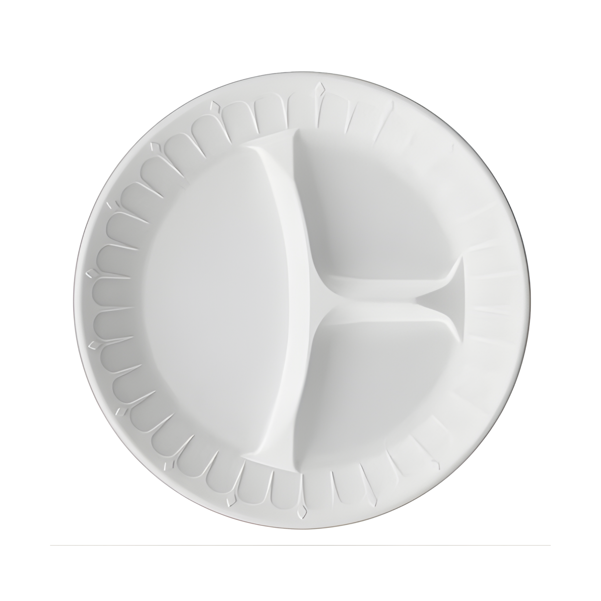 The Foam Pack Plate FP390 9" - 3 Compartment is the perfect solution for serving balanced meals with multiple components. Designed with three separate compartments, this foam plate ensures your main dish, sides, and sauces stay organized and mess-free. Whether you're running a restaurant, catering an event, or offering take-out, this sturdy, durable plate is ideal for a variety of meal types. Its high-quality foam construction provides excellent insulation, keeping your food hot and fresh.