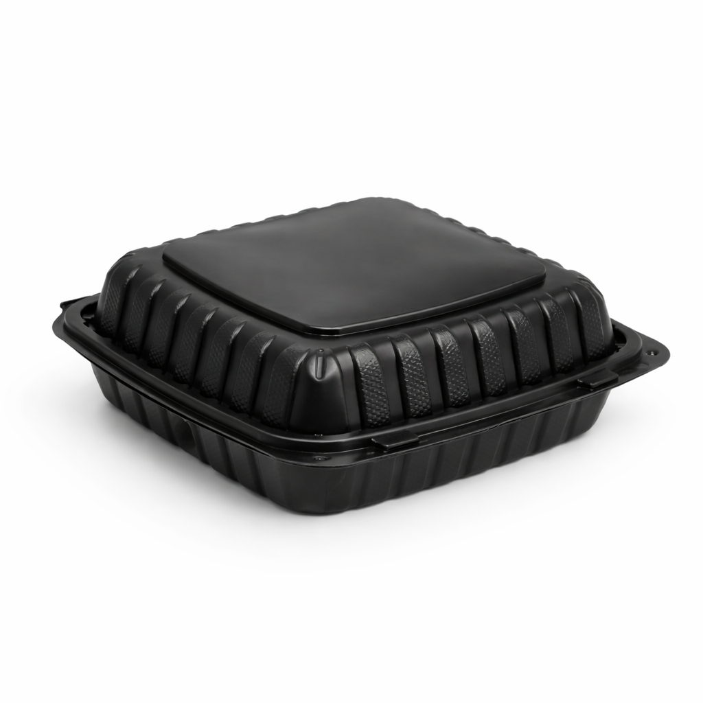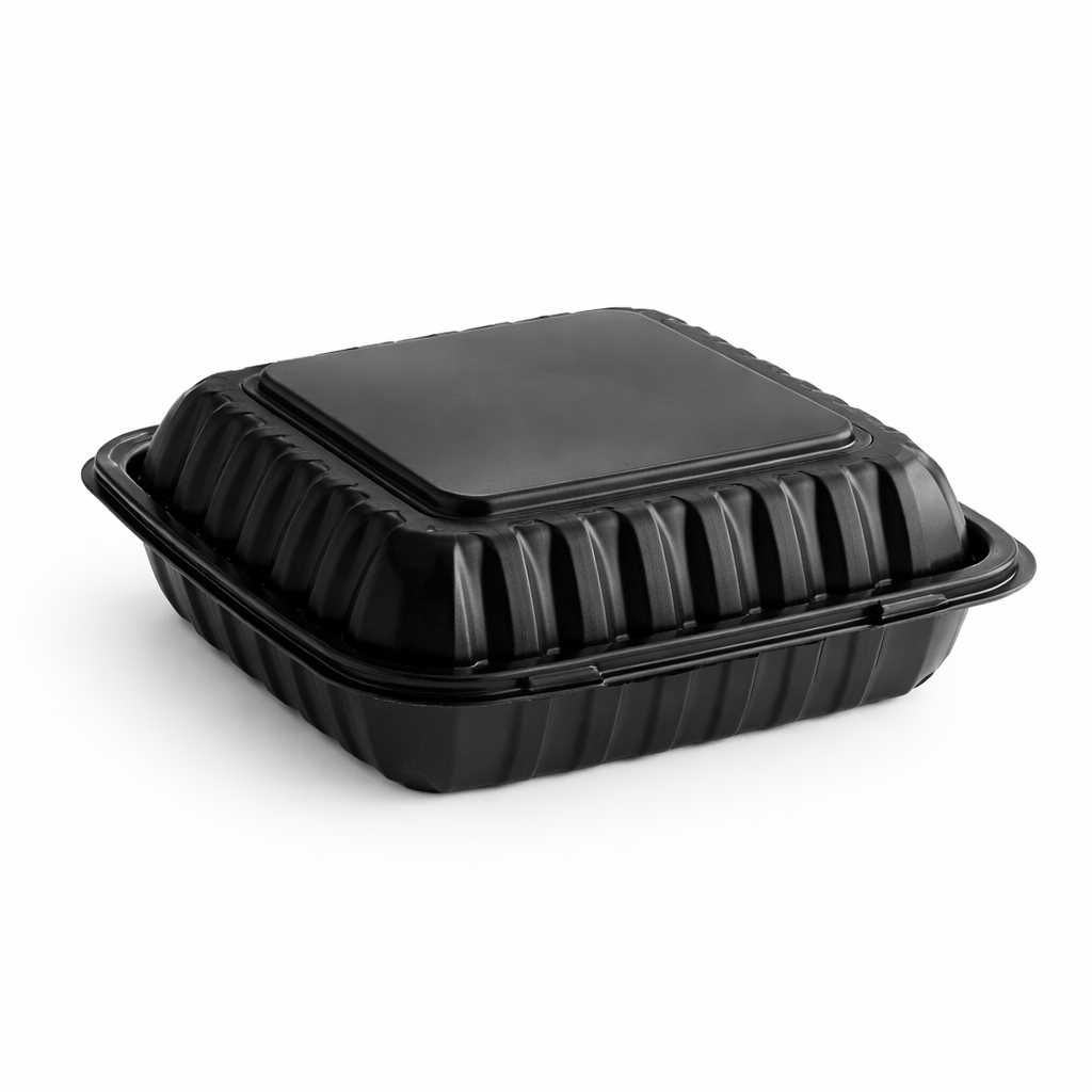 Our MFPP Black Hinged Container 3 Compartment 9x9 is a practical packaging solution for restaurants, takeout businesses, food trucks, cafés, and catering operations. Designed for dependable everyday food service use, this container helps keep different food items separated while offering a clean presentation and convenient handling. Its durable construction and secure hinged lid make it a reliable choice for takeout, delivery, and meal packaging.